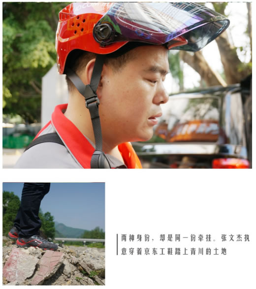 一个有趣的细节是,这趟青川之旅,张文杰执意要穿着京东的工鞋踏上青川的土地,他说:“十年前我接到的第一批救援物资就是来自京东,那个时候物资上写着的还是360buy。”在他眼里,自己和京东的缘分,就是从那里开始。